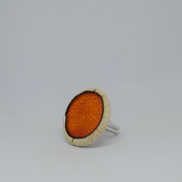Χειροποίητο κεραμικό δαχτυλίδι stoneware με ρυθμιζόμενη βάση ορείχαλκου επαργυρωμένη Ø~4,5cm