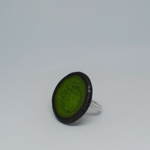 Χειροποίητο κεραμικό δαχτυλίδι stoneware με ρυθμιζόμενη βάση ορείχαλκου επαργυρωμένη Ø~4,5cm