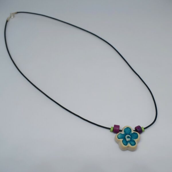Χειροποίητο κεραμικό κολιέ με δερμάτινο κορδόνι και ασημένιο κούμπωμα