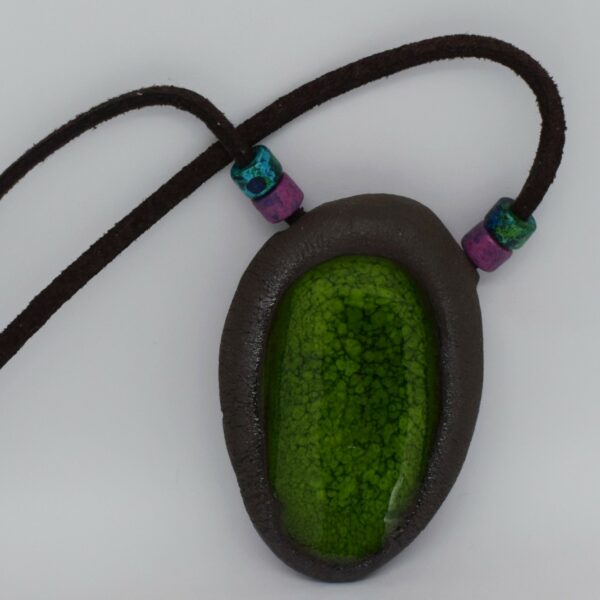 Χειροποίητο κεραμικό μενταγιόν stoneware με κορδόνι σουετ