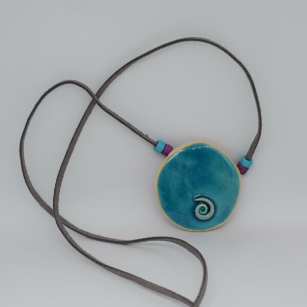 Χειροποίητο κεραμικό μενταγιόν stoneware με κορδόνι σουετ