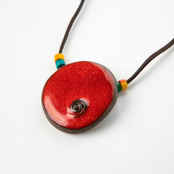 Χειροποίητο κεραμικό μενταγιόν stoneware με κορδόνι σουετ
