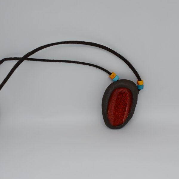 Χειροποίητο κεραμικό μενταγιόν stoneware με κορδόνι σουετ
